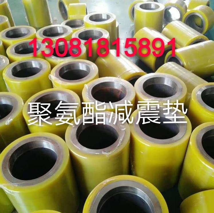 包含弹性减振体和固定于弹性减振体二端的螺柱。其特点是弹性减振体为聚氨酯弹性体,在其弹性体内预埋有与二端的螺柱构成一体本实用新型选用此结构,拉伸强度、抗撕裂强度高,弹性好,减振作用佳,且抗腐