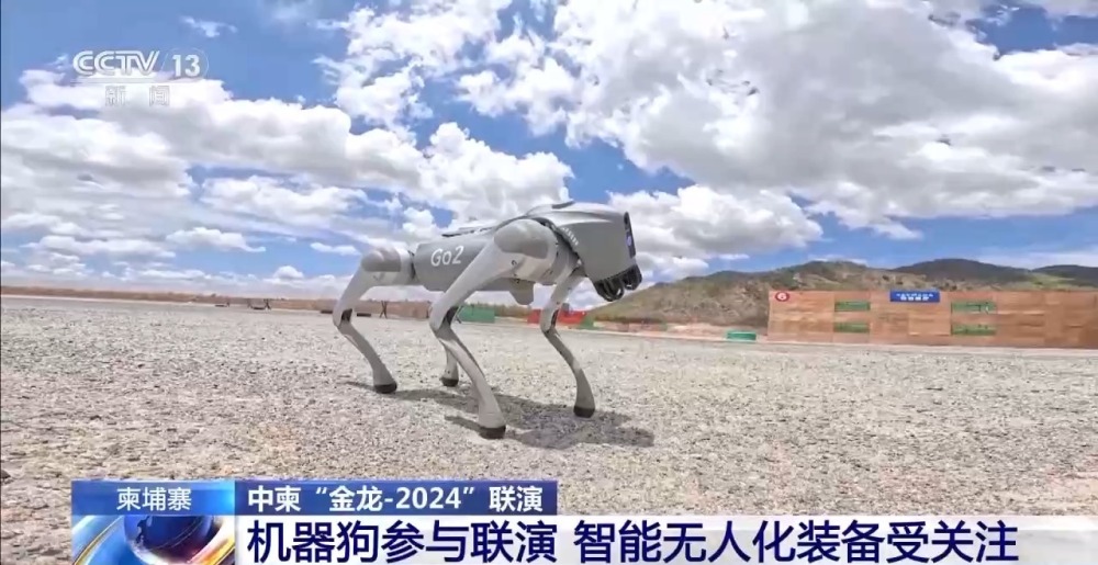 在柬埔寨王家军某练习基地,中柬“金龙-2024”联演适应性练习正在进行。一系列智能无人化配备引人重视。其中最吸睛的便是“萌宠”机器狗。