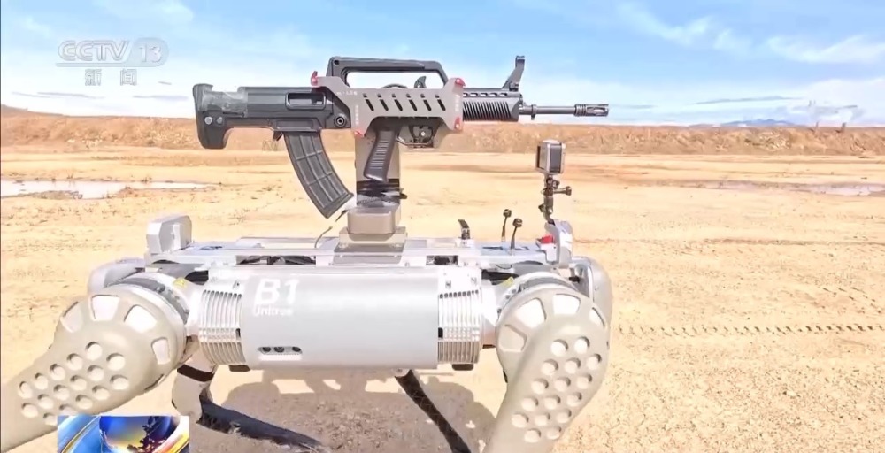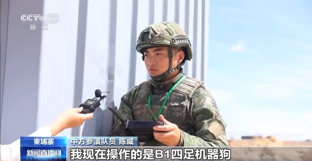 中方参演队员 陈威:我现在操作的是B1四足机器狗,它能够在咱们的练习傍边,替代咱们的队员先行进行侦查和发现敌人后火力冲击,是咱们城市攻防作战中的新成员。